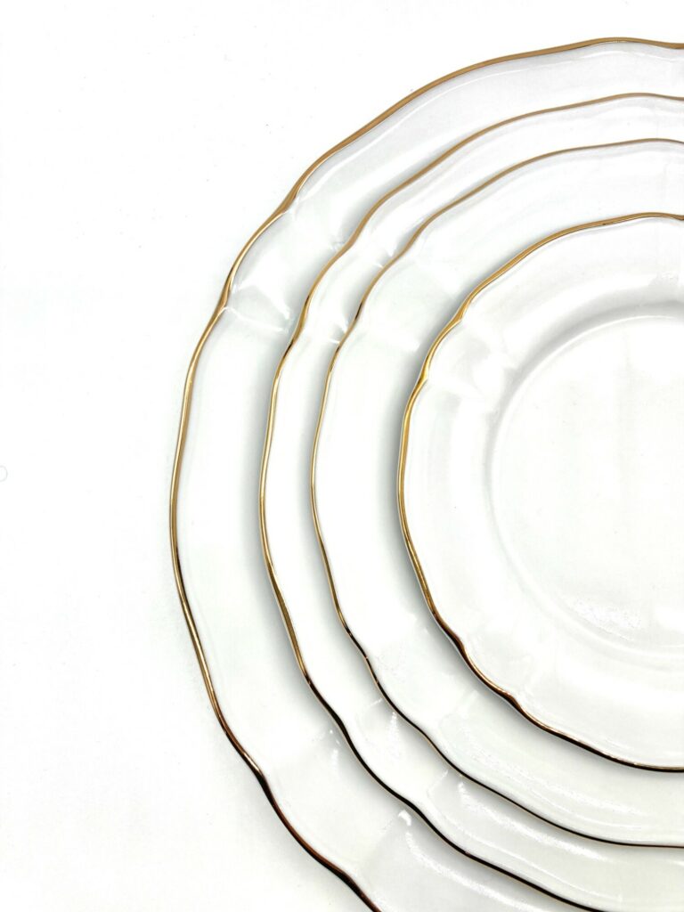 Elegantissima linea in fine porcellana Bianca decorata cdon filo oro