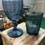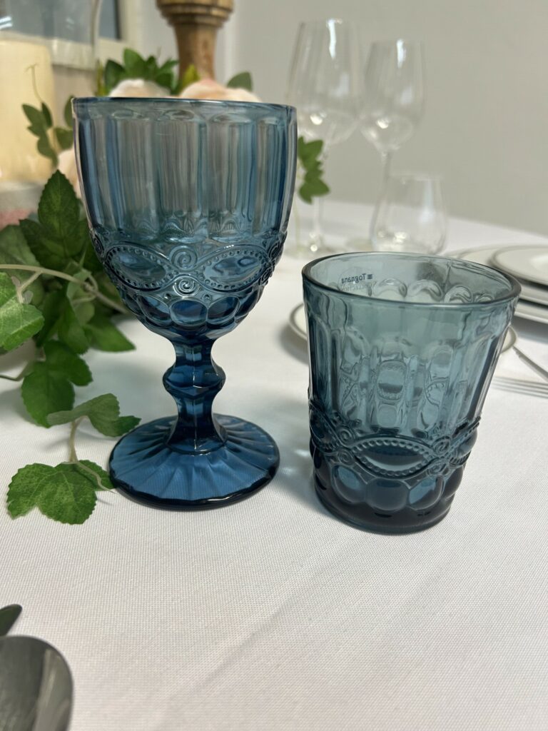 Bicchiere basso da acqua e calice in vetro Blu